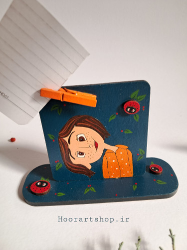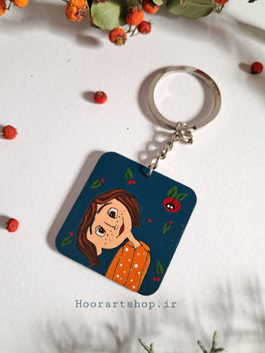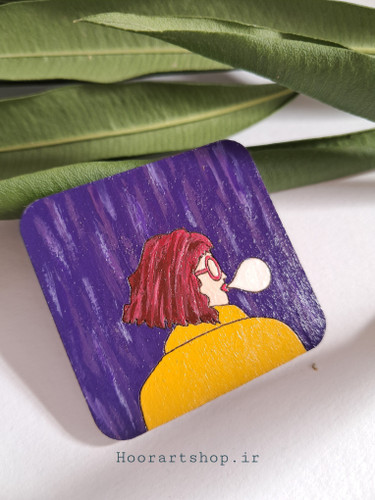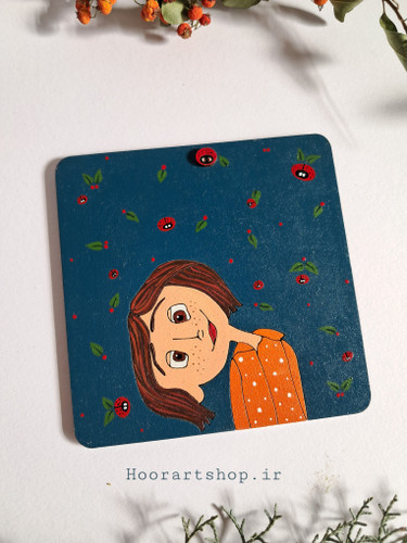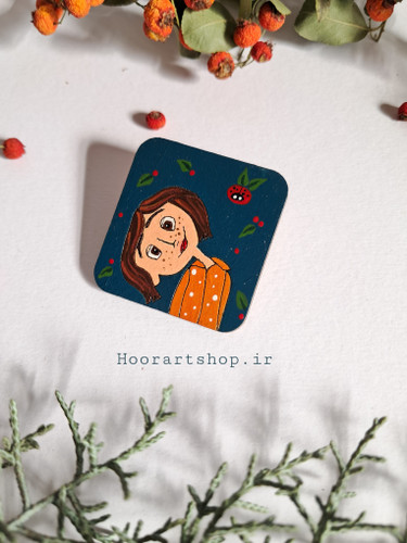 اکسسوری چوبی نقاشی شده دختر مو شرابی