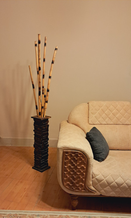 دقت داشته باشید چوبهای بامبو صرفا برای عکاسی استفاده شده و گلدان بدون بامبو ارسال میشه