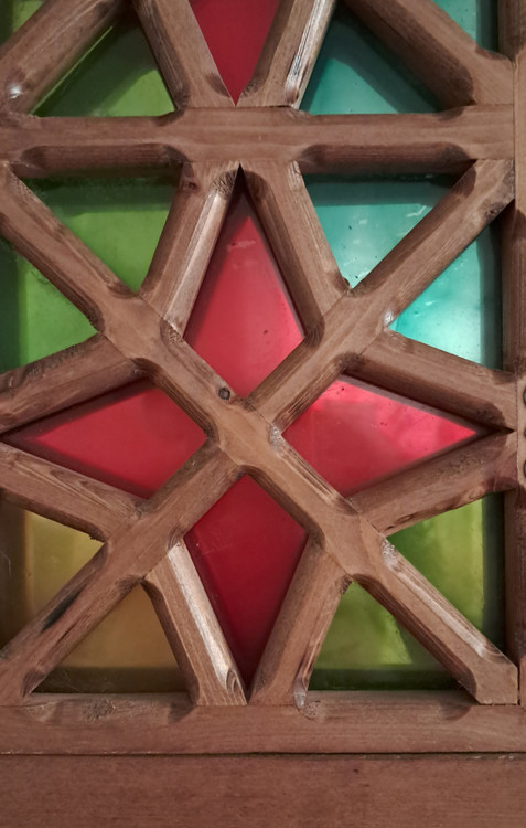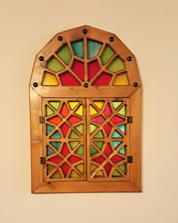 داخل آن آینه دارد و به سبک گره چینی کار شده، واز پلکسی رنگی به عنوان شیشه استفاده شده